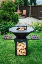 Unser Feuerschalengrill ist mit einem praktischen Podium, einer Ascheschublade und einer Luftzufuhrregelung zur Verbrennungs- / Temperaturregelung ausgestattet. Unterteil hat einen rechteckigen Holzspeicher.